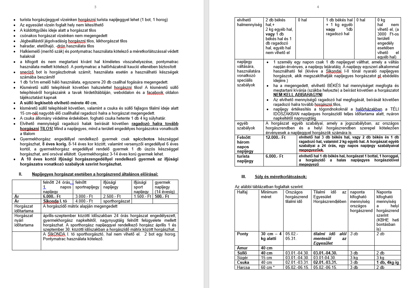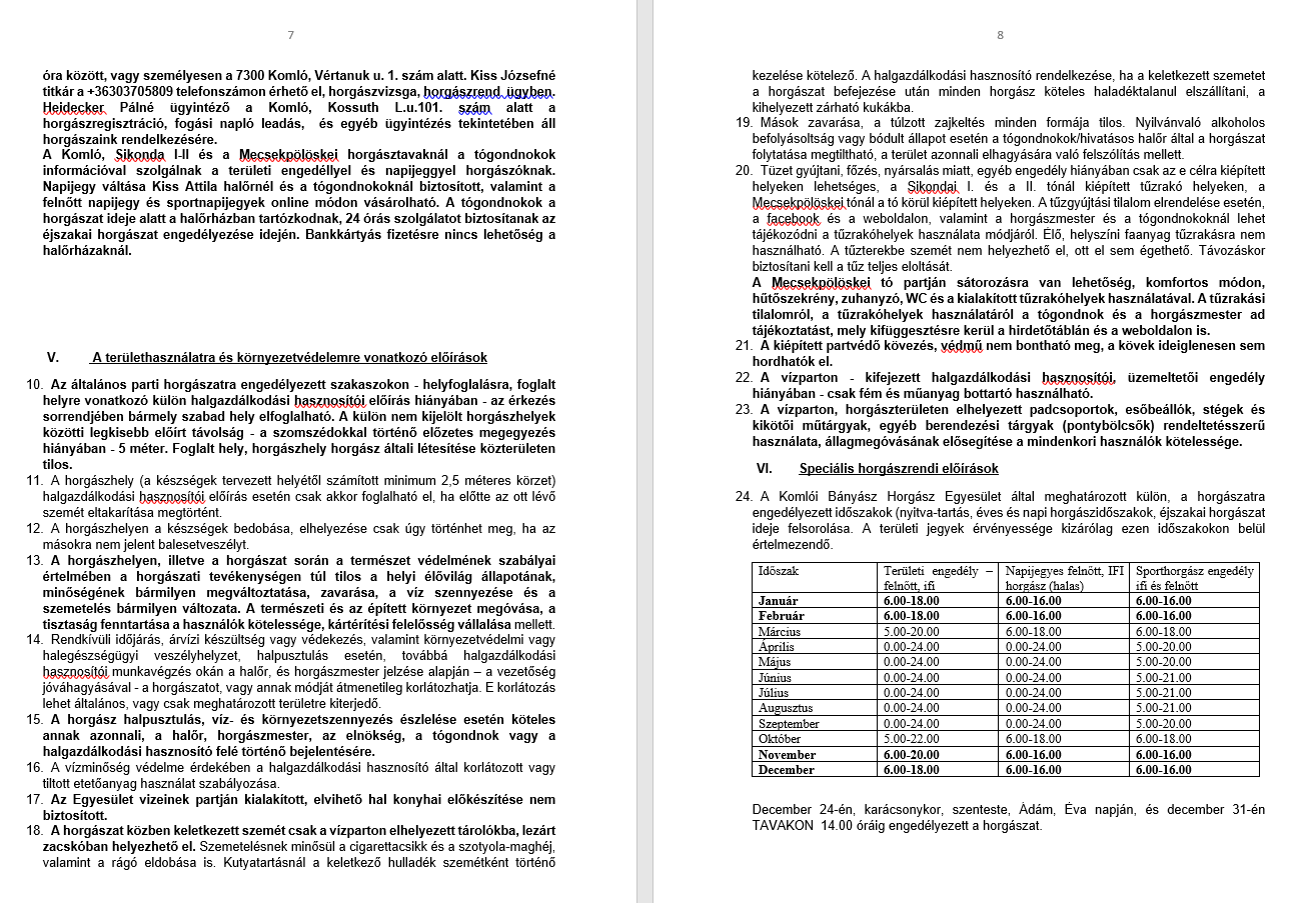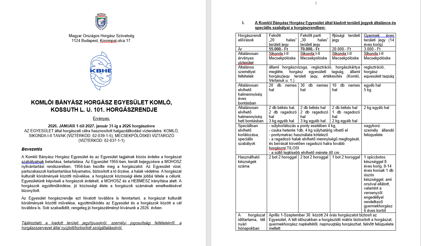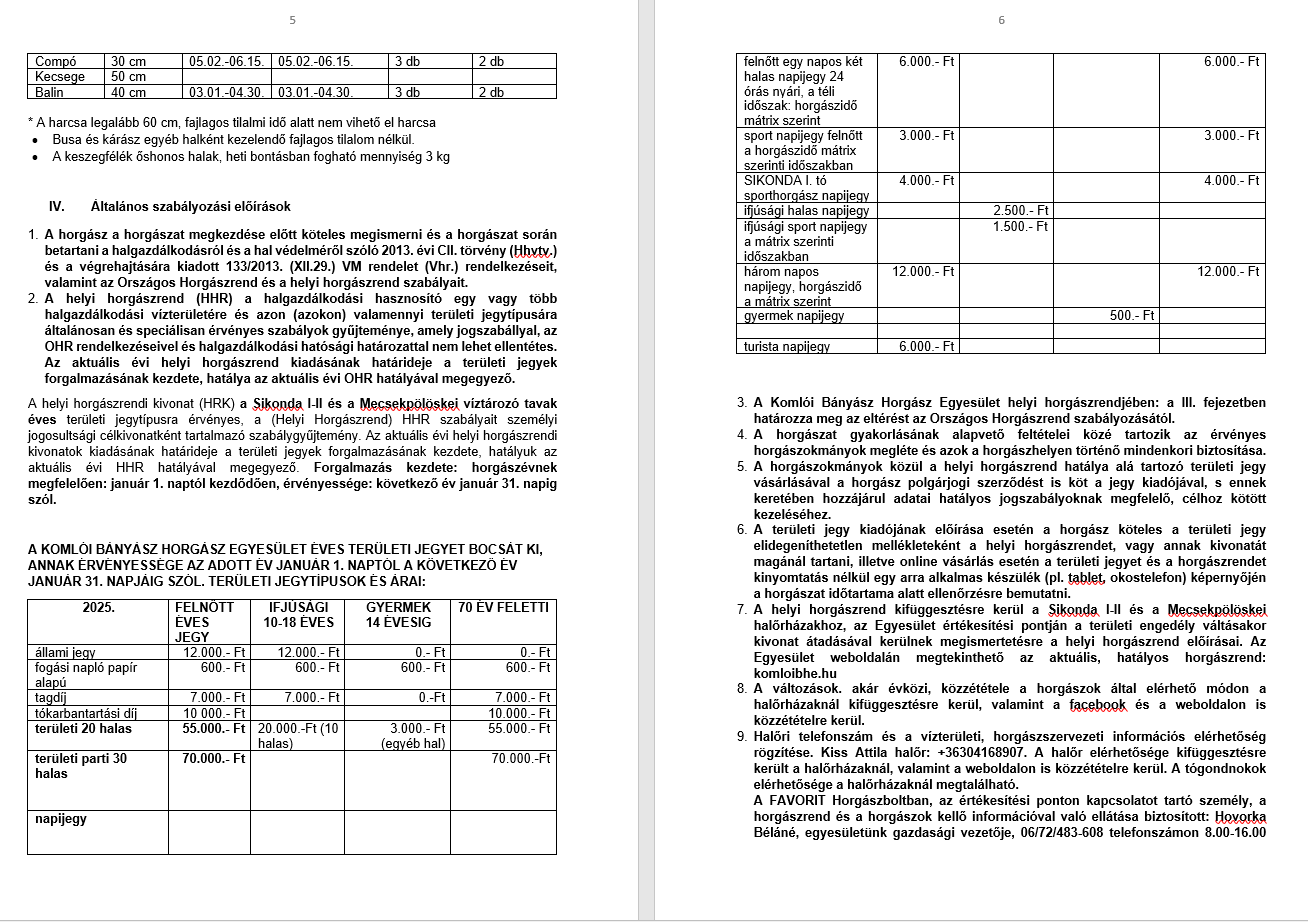 Helyi Horgászrend: